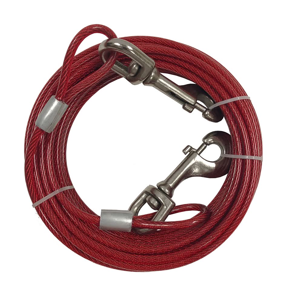 Coated Tie-Out Dog Cable, 10 ft, Red