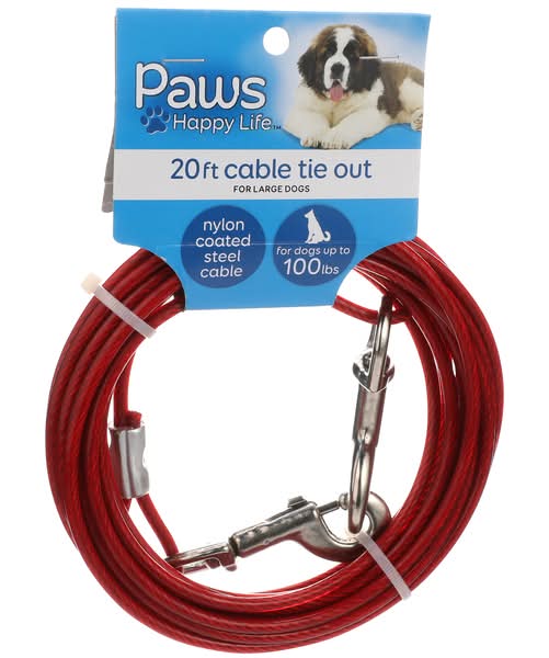 Paws Happy Life Dog Cable Tie Out, 20 ft, Red