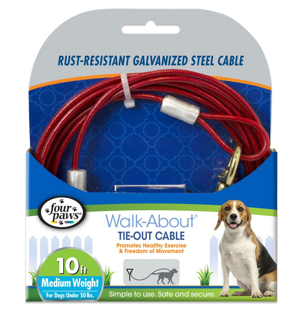 Four Paws Dog Tie Out Cable, Medium,10 Feet, Red
