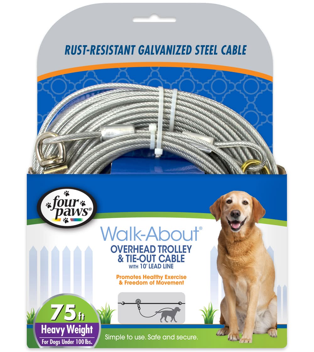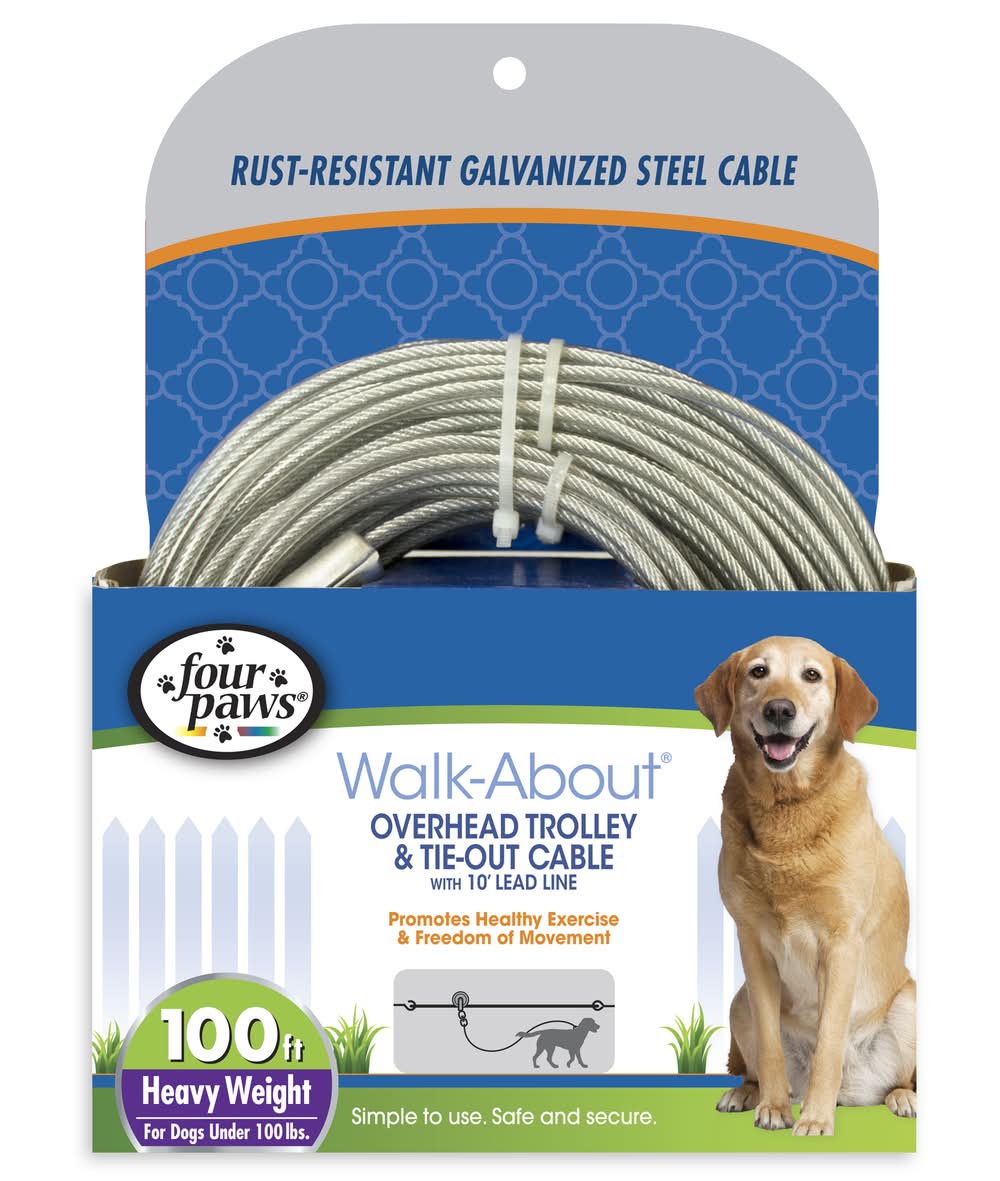 Four Paws Walk-About Heavy Weight Overhead Dog Trolley Exerciser Cable, 50'
