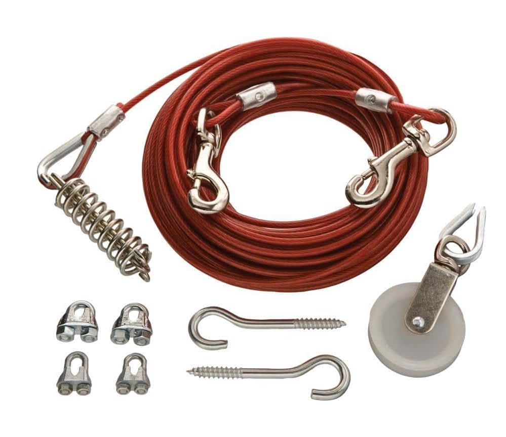 Everbilt Galvanized Dog Run Cable Exerciser Kit, 1/8 In. X 75 Ft, Red