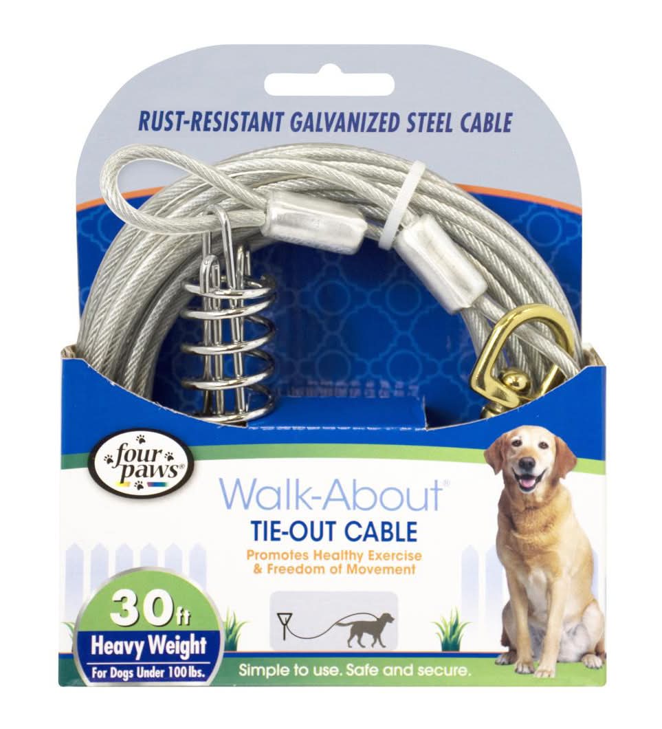 Four Paws Heavy Weight Dog Tie Out Cable For Dogs Under 100lbs, 15 Feet, Silver