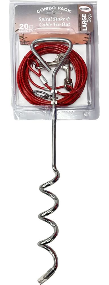 OmniPet Spiral Stake & Cable Tie-Out For Large Dogs, 20 ft, Red