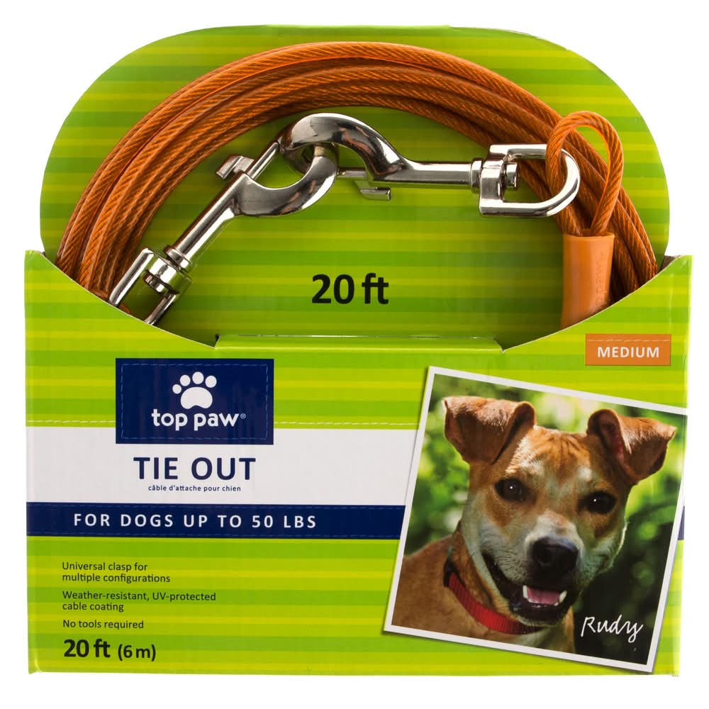 Top Paw Dog Tie Out Cable, Medium-20 Ft, Orange