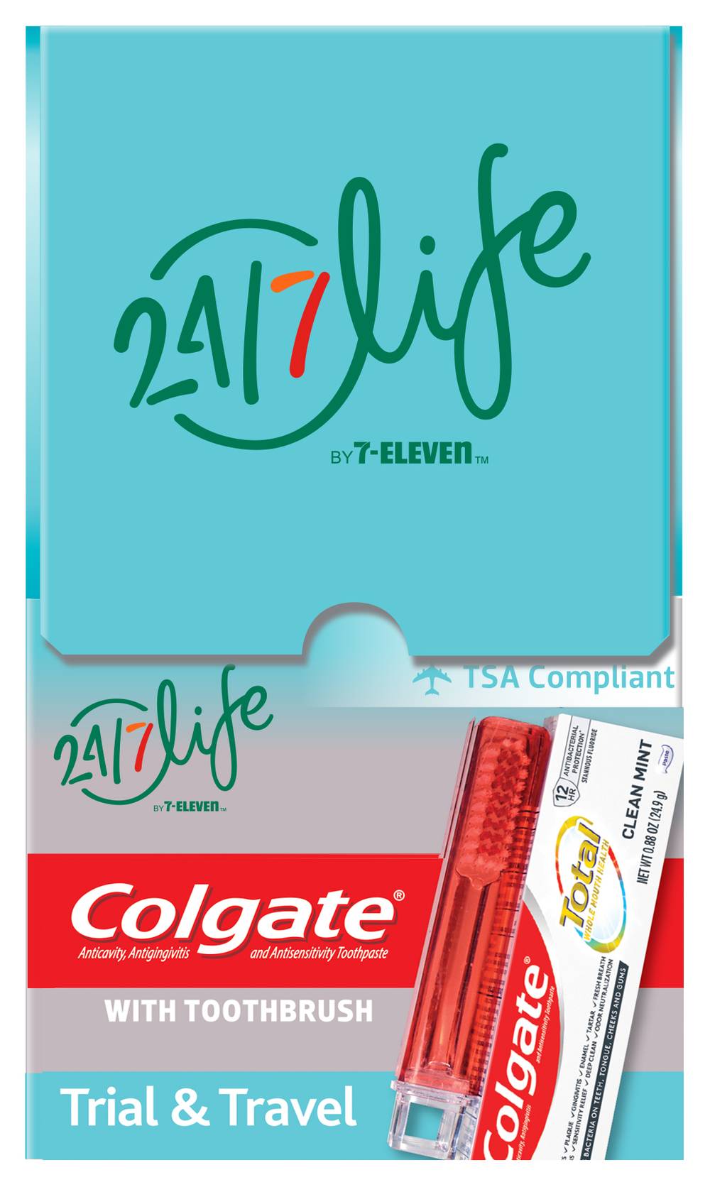 7-Eleven Toothpaste With Toothbrush Travel Box, Clean Mint (10 ct)
