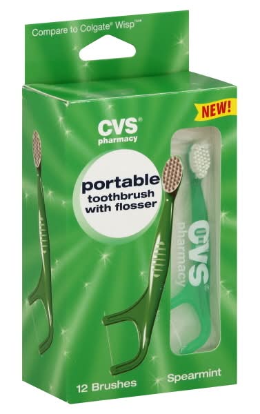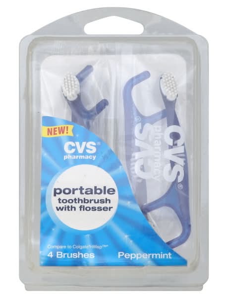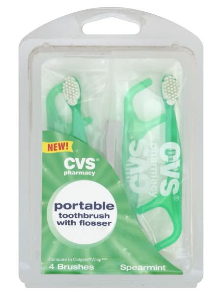 CVS Pharmacy Portable Toothbrush With Flosser, Peppermint (4 ct)