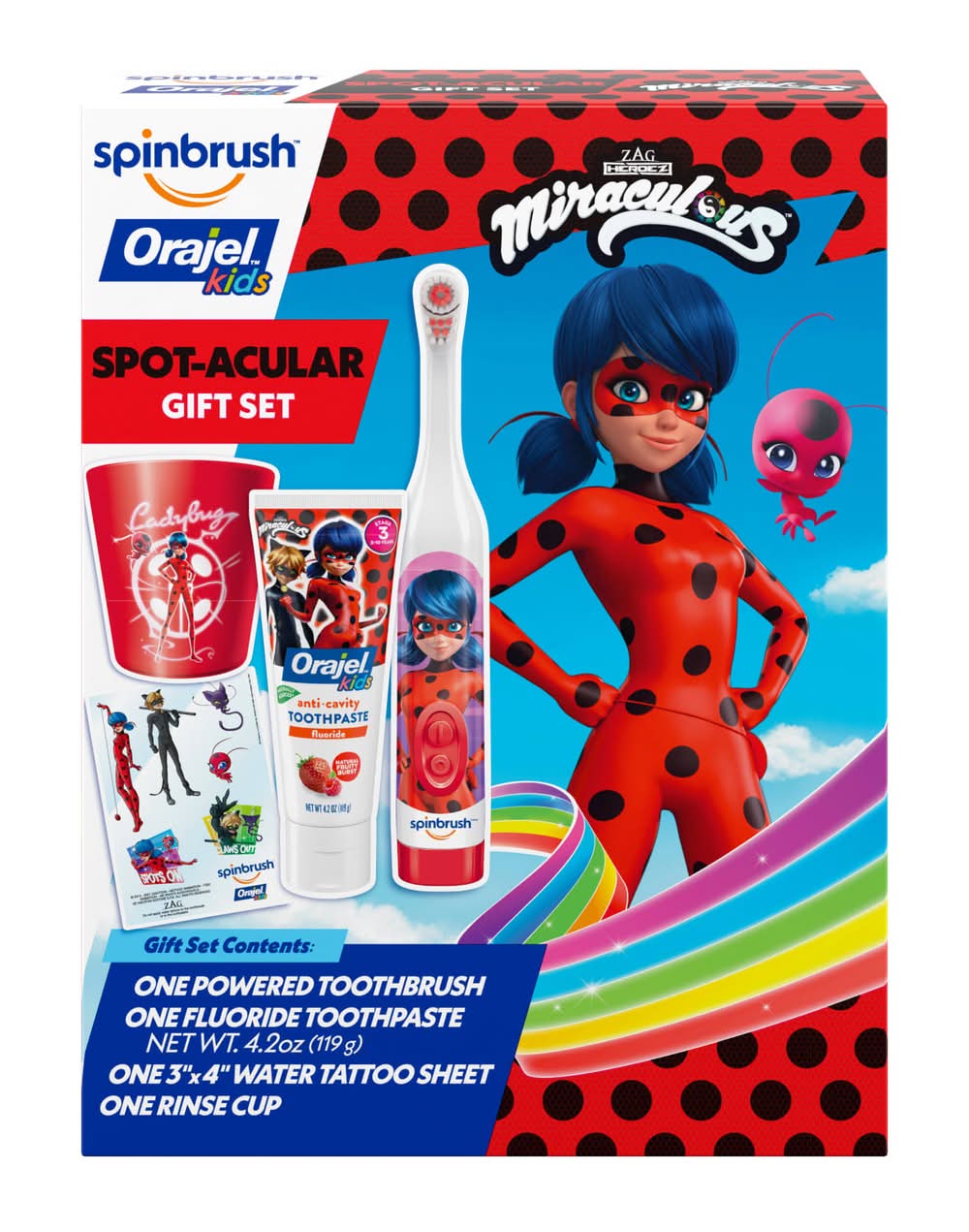 Spinbrush Orajel Kids Miraculous Ladybug Toothbrush Spot Acular Gift Set (4.2 oz)