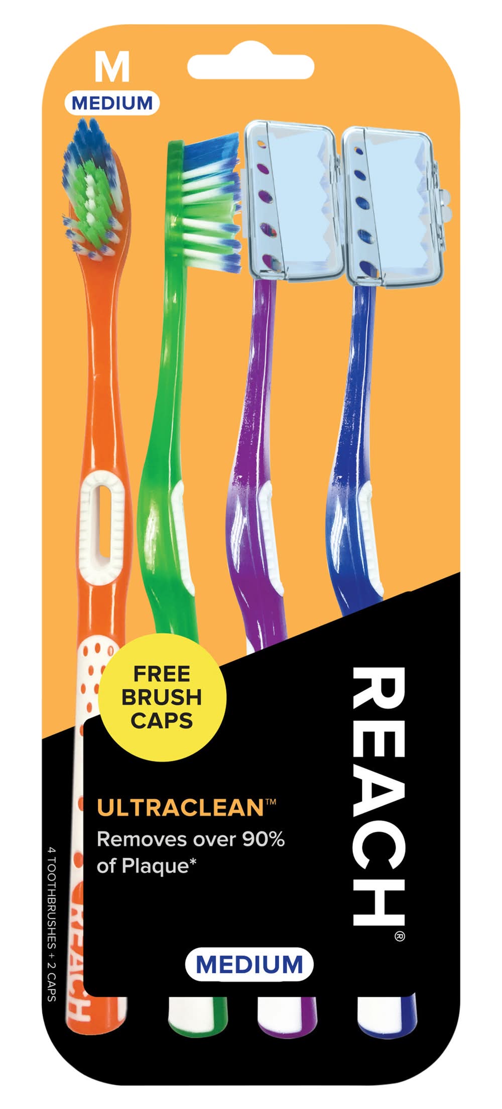 Reach Ultra Clean Tooth Brushes, Medium, Red, Violet, Blue, Green (2.88 oz, 4 ct)