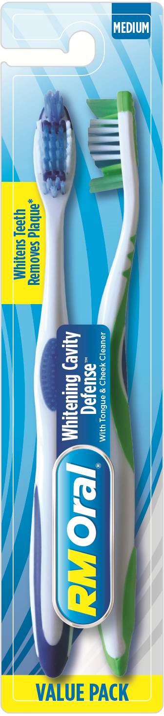 RM Oral Whitening Cavity Defense Toothbrushes Value pack, M (2 ct)