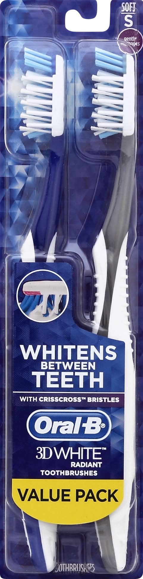 Oral-B 3D White Luxe Stain Eraser Soft Toothbrush Value pack (3.2 oz, 2 ct)