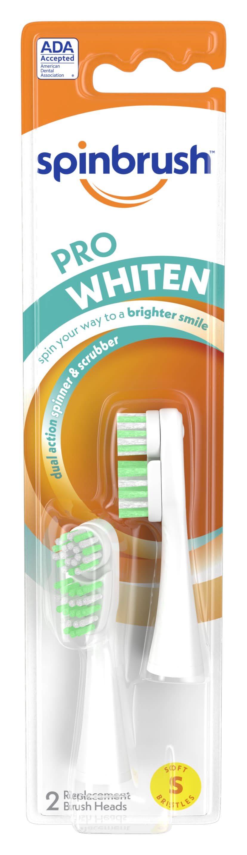 Spinbrush Pro Whiten Refill Soft Bristles Includes Replacement Heads Toothbrushes (2 ct)