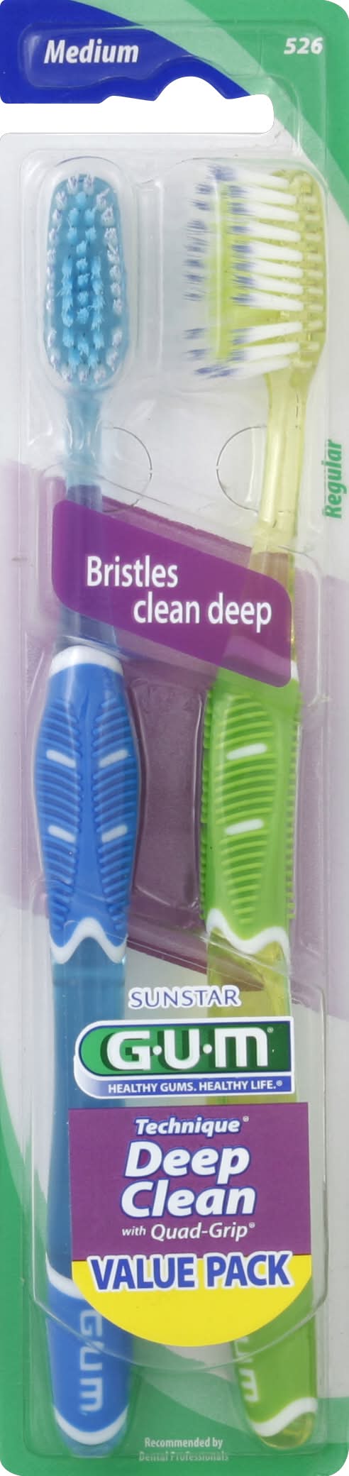 GUM Sunstar Technique Deep Clean With Quad-Grip Toothbrushes, Medium/Regular (2 ct)
