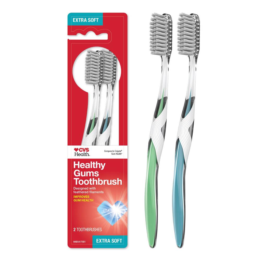 CVS Health Extra Soft Healthy Gums Toothbrush, Green-Blue (2 ct)