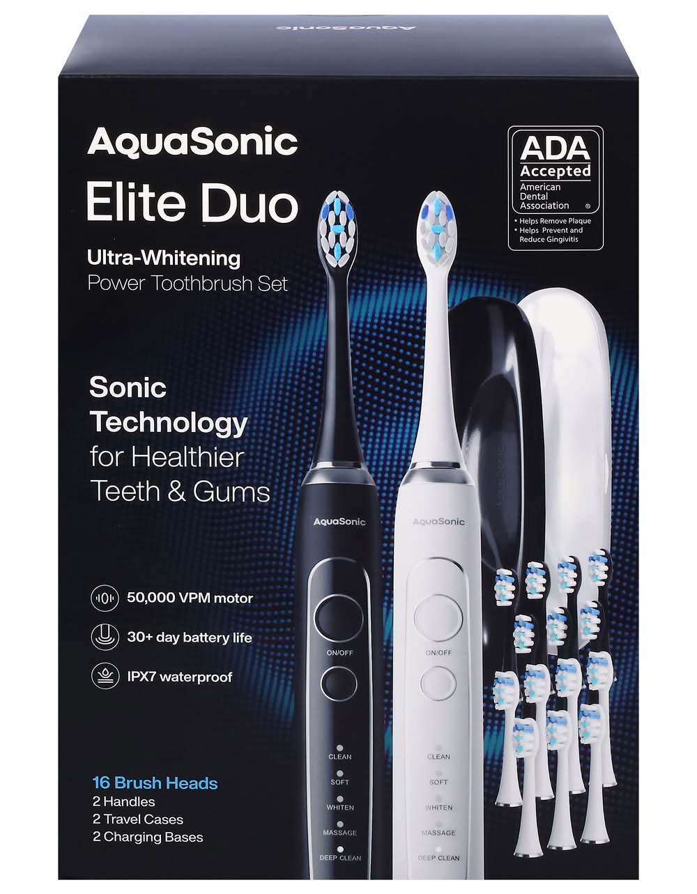 AquaSonic Elite Duo Ultra-Whitening Power Toothbrush Set