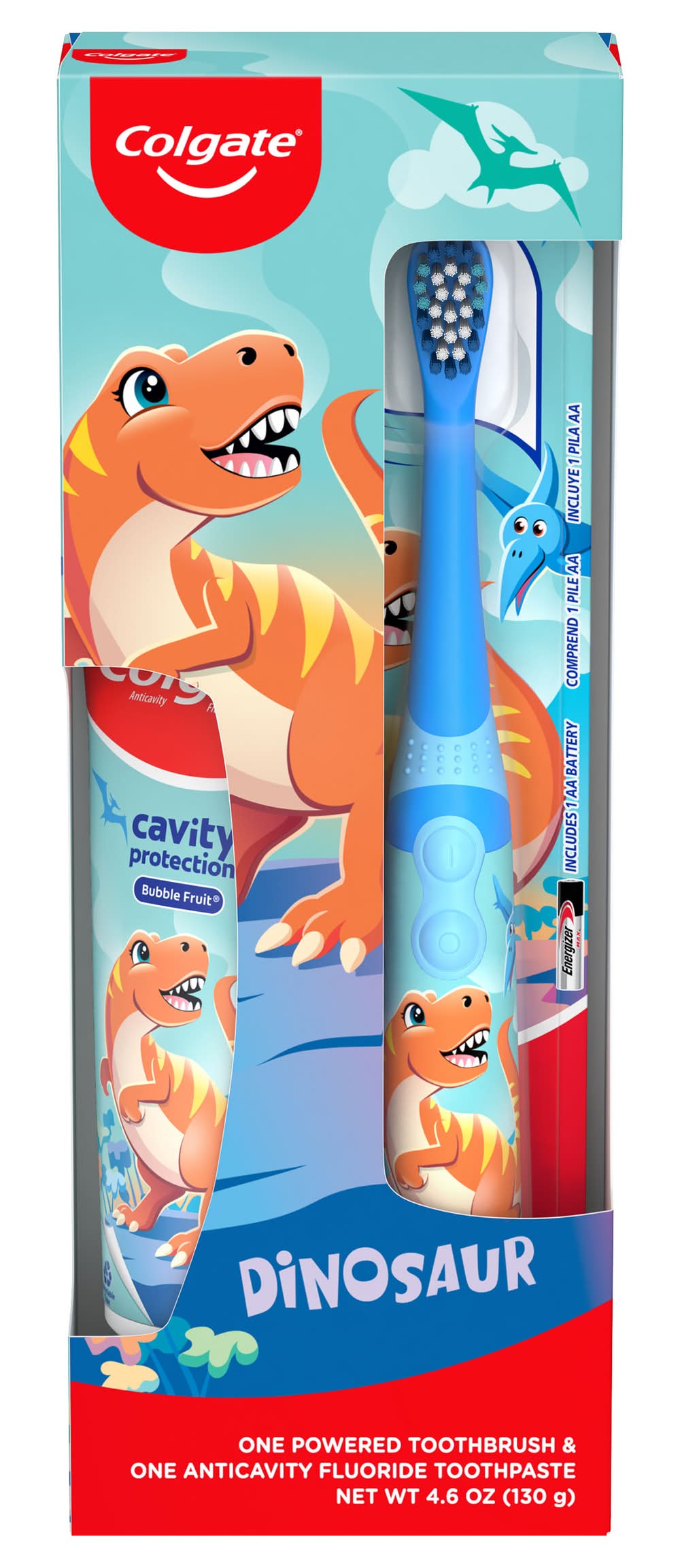 Colgate Dinosaur Powered Toothbrush & Anti Cavity Toothpaste, Mild Bubble Fruit (4.6 oz, 3 ct)