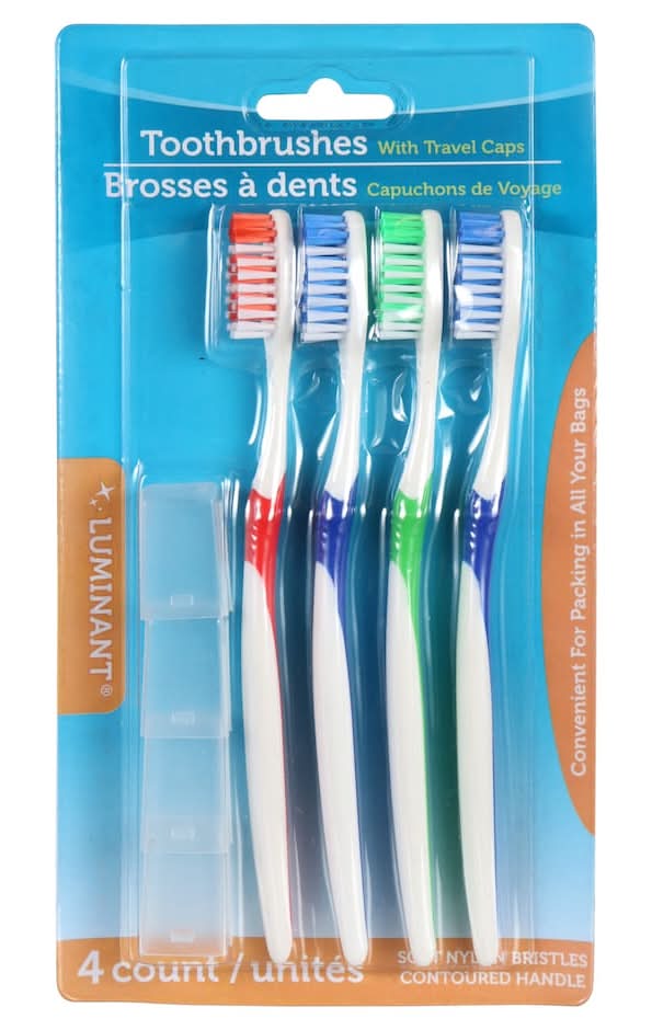 Luminant Ultra Soft Toothbrushes With Travel Caps, Assorted (4 ct)