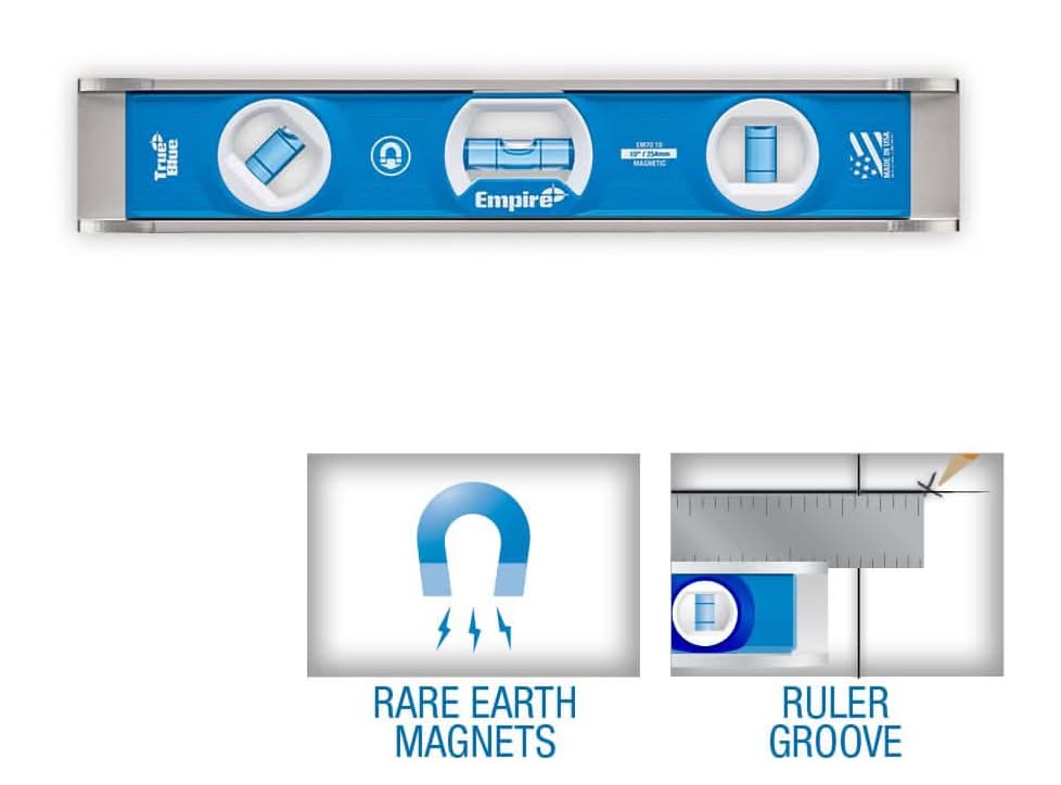 Empire True Rare Earth Magnetic Torpedo Level, 10 in, Blue