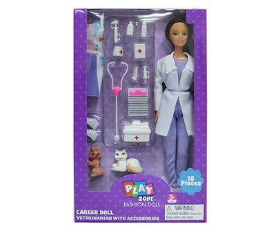 Play Zone Career Veterinarian Brown Hair Doll & Play Set (18 ct)