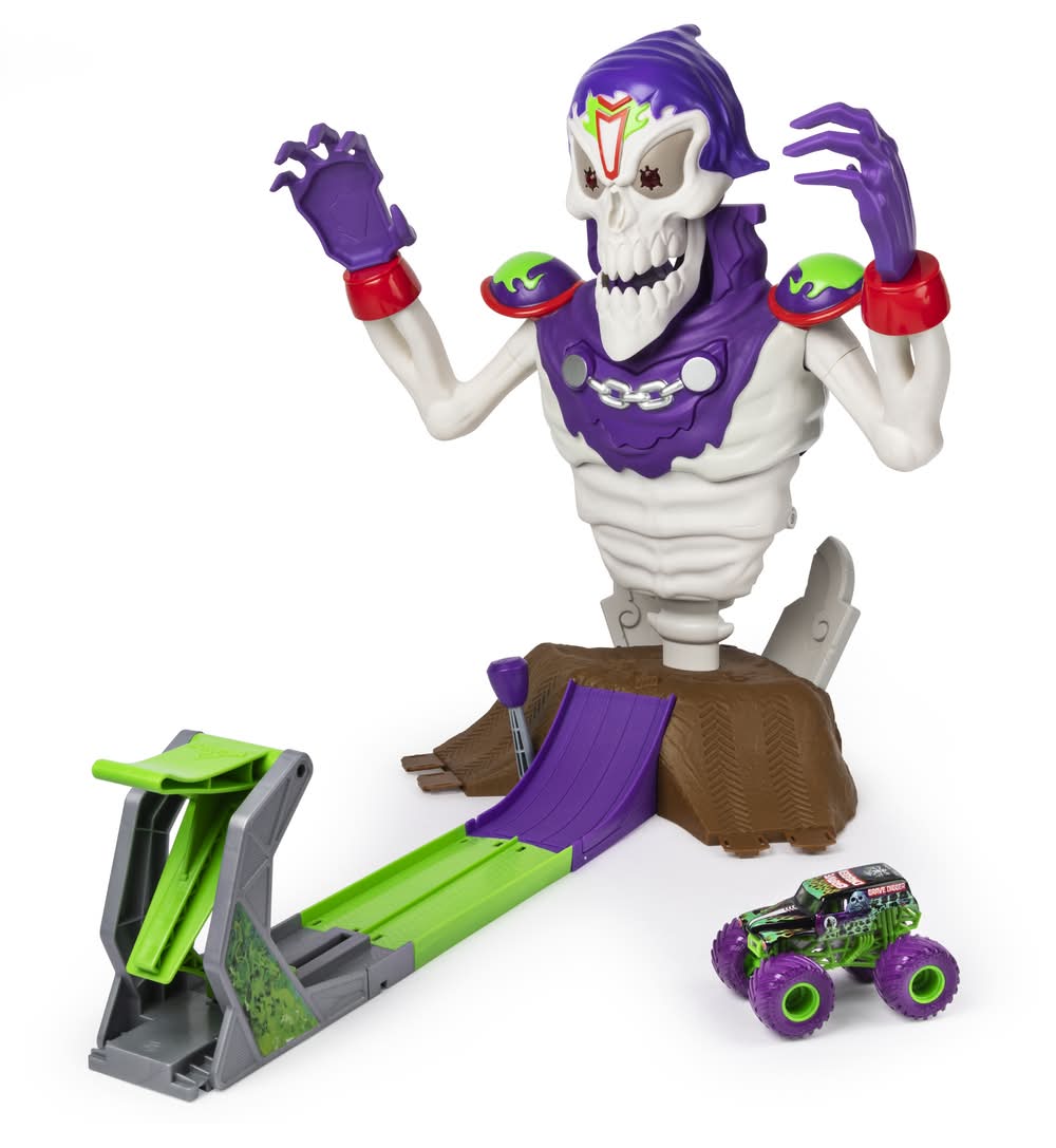 Monster Jam Grim Takedown Playset With Lights and Sounds Featuring Exclusive Die Cast Grave Digger Monster Truck
