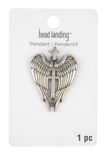 Bead Landing Metal Wings & Cross Pendant, Silver