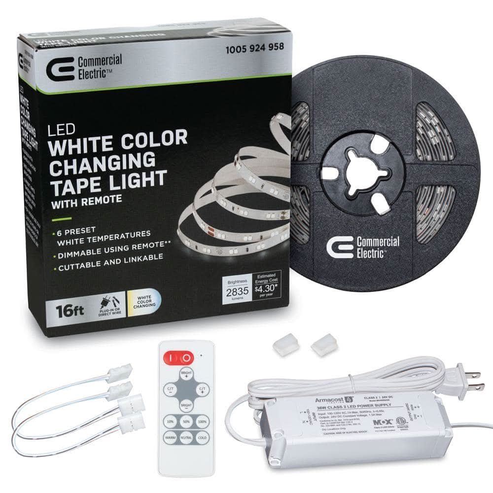 Commercial Electric Led Tunable Tape Light Kit, 16 ft, White