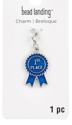 Bead Landing Ribbon 1st Place Charm, 17 mm, Blue