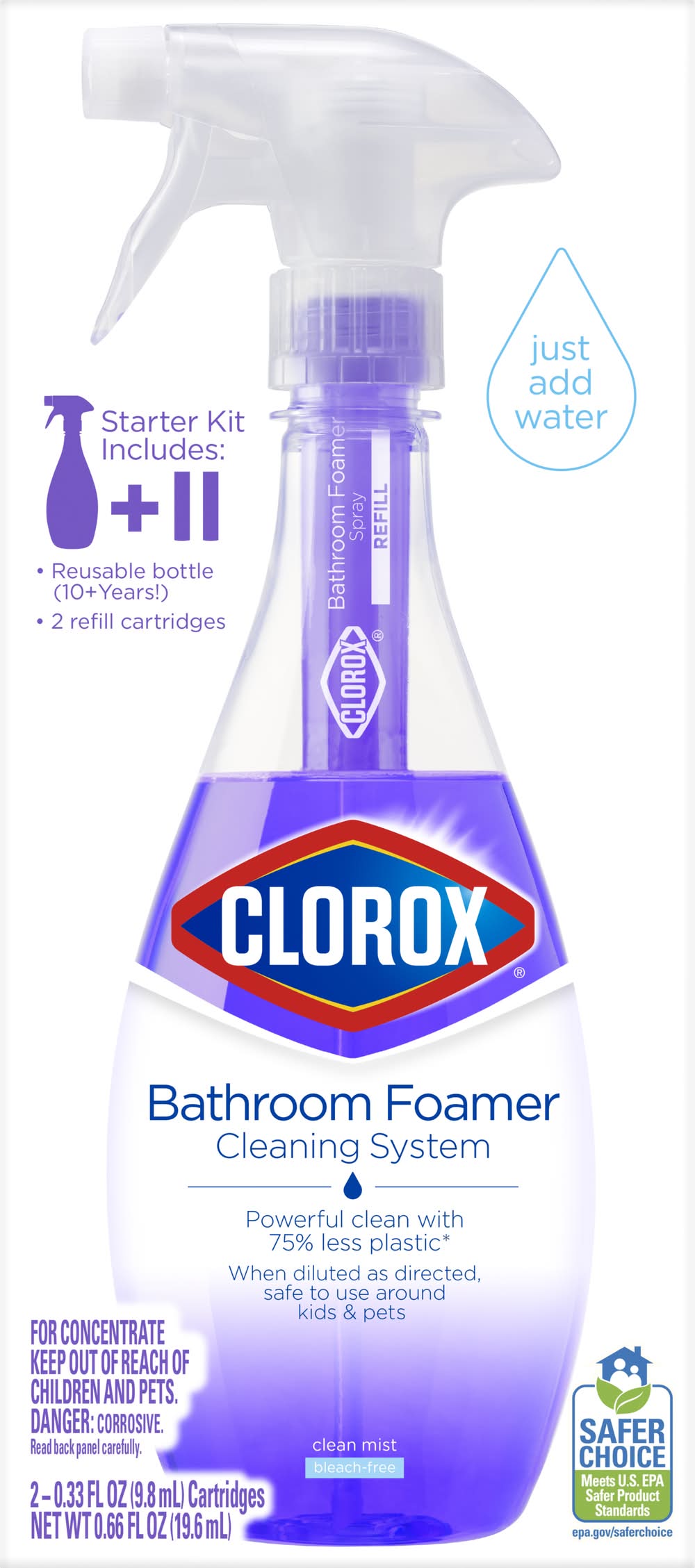 Clorox Bathroom Foamer Refillable Cleaner Starter Kit 1 Sprayer and 3 Refills (3.39 fl oz, 3 ct)