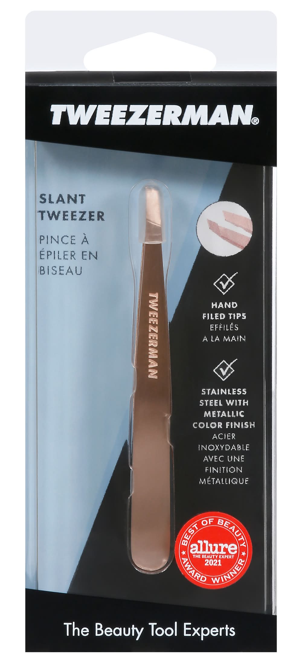 Tweezerman Stainless Steel Slant Tweezer, Rose Gold