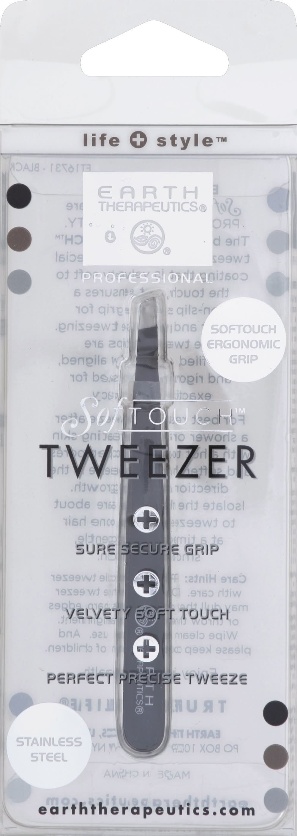 Earth Therapeutics Life + Style Softouch Tweezer, Black