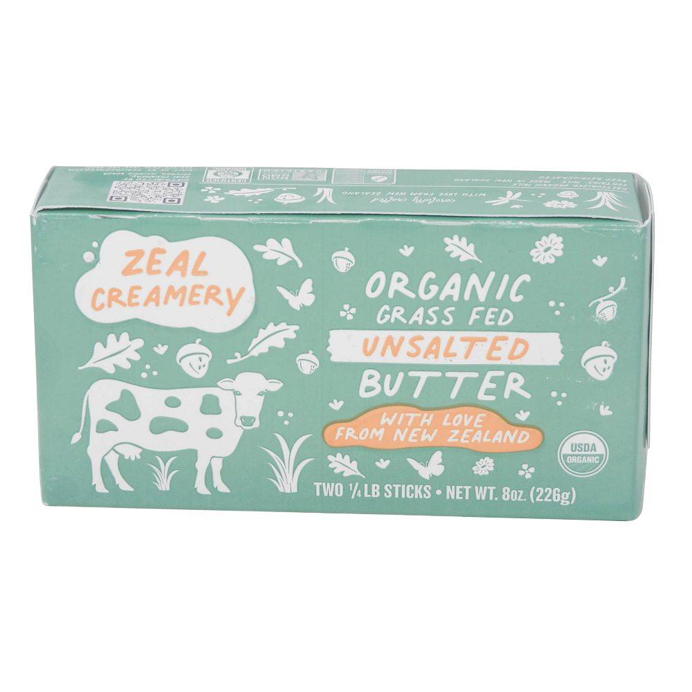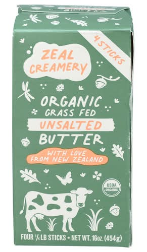 Zeal Creamery Organic Unsalted Grass Fed Butter (16 oz, 4 ct)