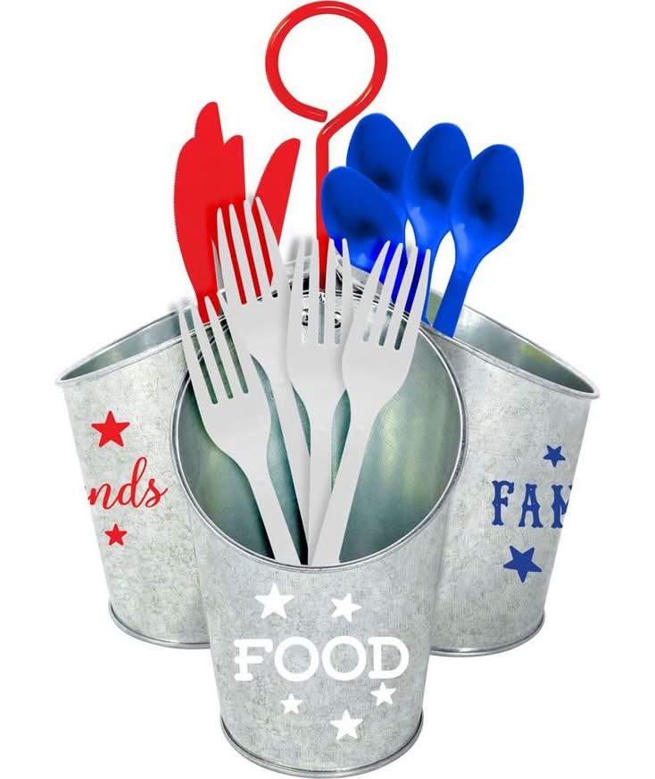 Party City Metal Utensil Caddy, 7.25 In X 10.75 In, Silver