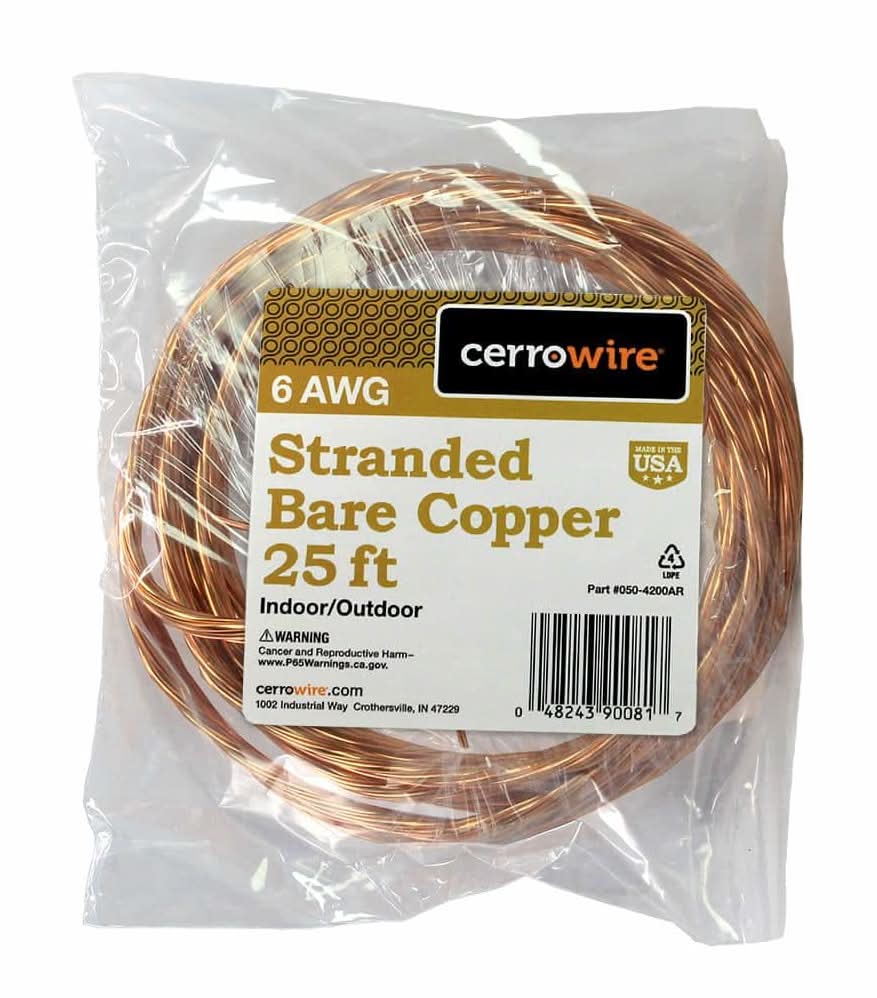 Cerrowire 6 Awg Stranded Bare Copper Grounding Wire, 25 ft