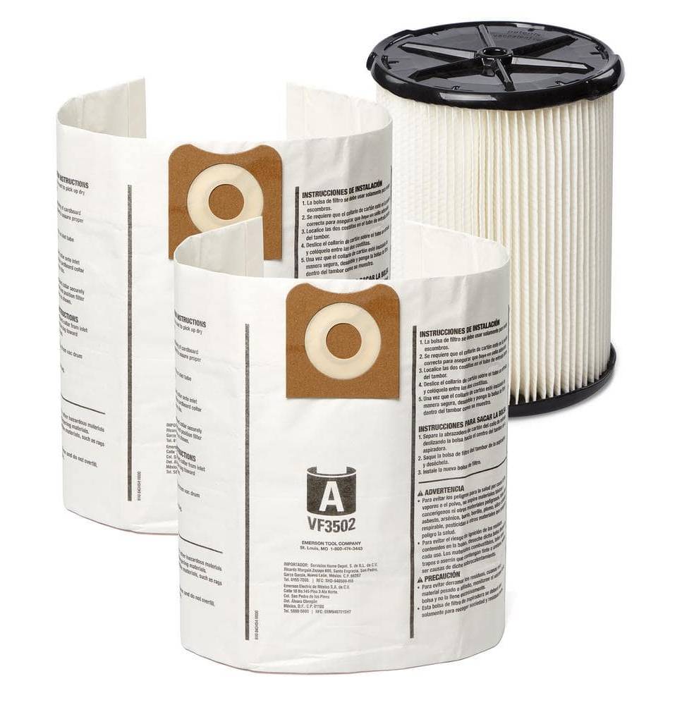 RIDGID Wet Dry Vac Filter Kit With General Debris Cartridge Filter & Dust Bag (3 ct)