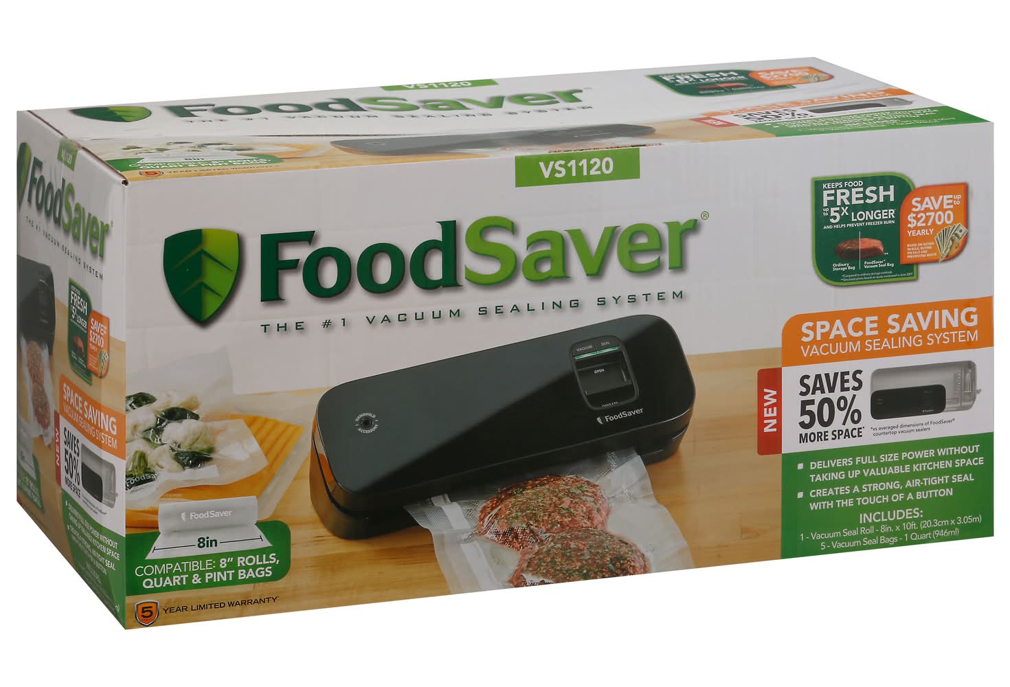 FoodSaver Space Saving Vacuum Sealer With Bags and Roll, Black (8 ct)