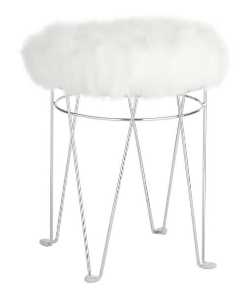 At Home Rion Chrome Wire Vanity Stool & Padded Faux Fur Seat, White