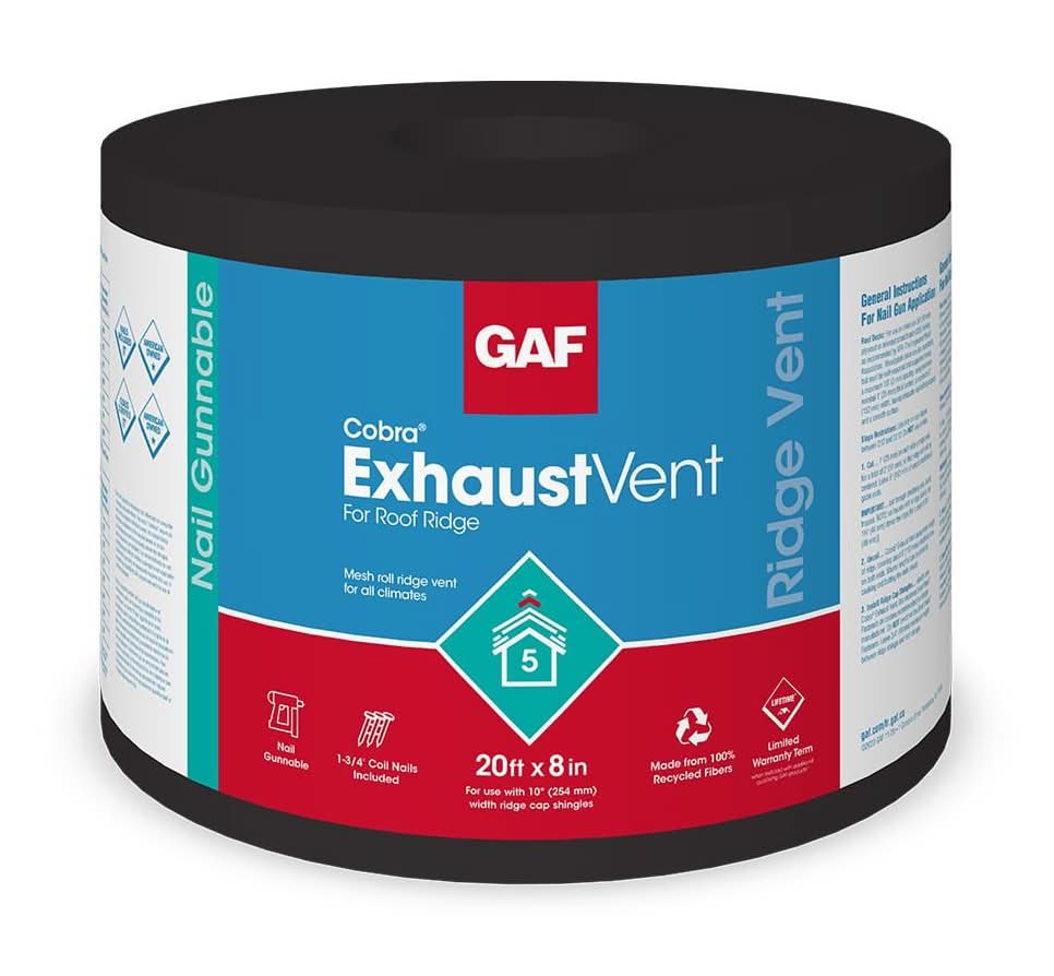 GAF Cobra Exhaust Vent For Roof Ridge, 20 ft x 8 in, Black
