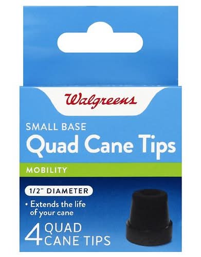 Walgreens Small Base Quad Cane Tips, 1/2 in, Black (4 ct)