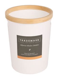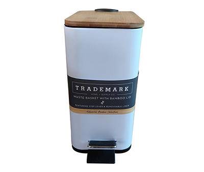 Trademark Slow-Close Narrow Wastebasket With Bamboo Lid, White