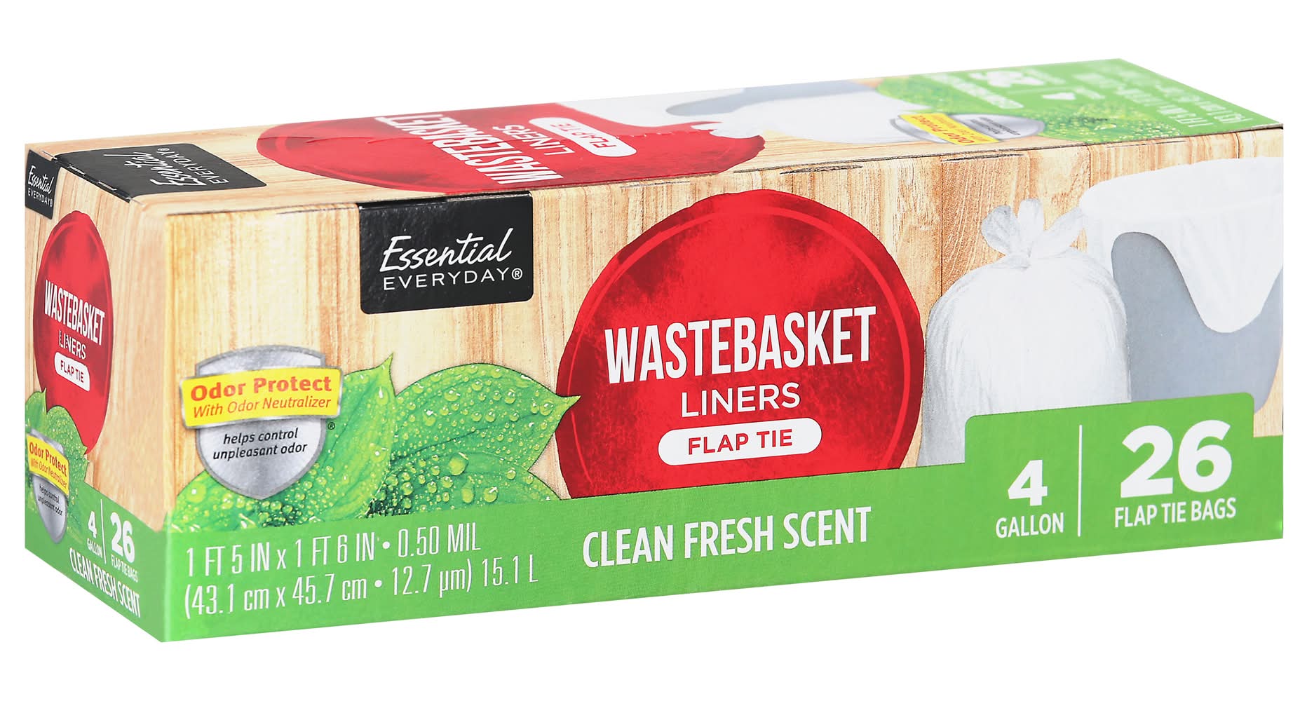 Essential Everyday 4 Gal Fresh Scent Flap Tie Wastebasket Liners (3.6 oz)