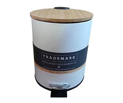 Trademark Slow-Close Round Waste Basket With Bamboo Lid 5L, White