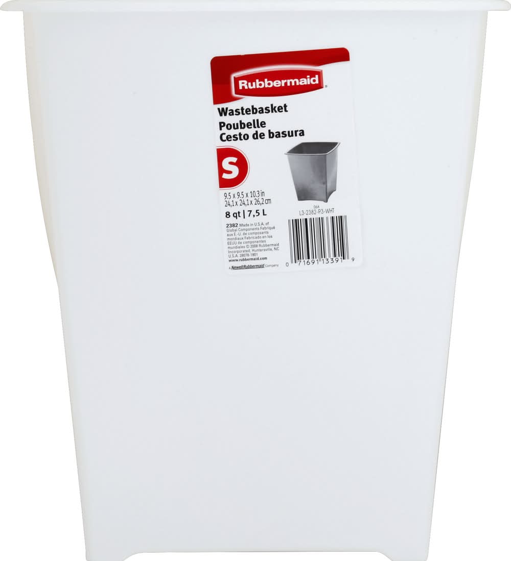 Rubbermaid 8 Quarts White Wastebasket 9.5 X 9.5 X 10.3 in (7.1 oz)