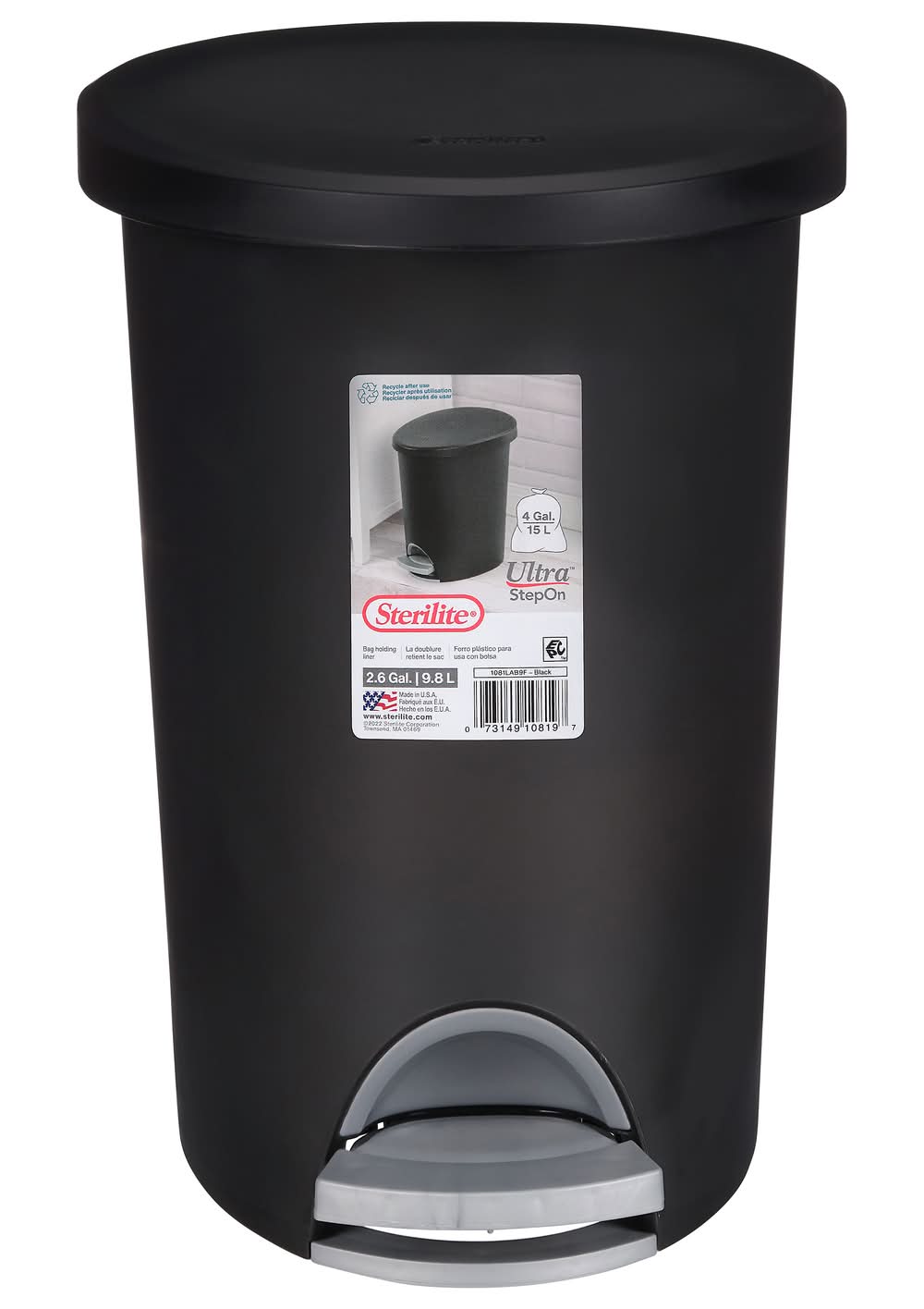 Sterilite Ultra Black Stepon Wastebasket (2.6 gal)