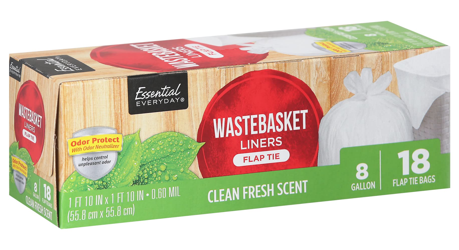 Essential Everyday 8 Gallon Wastebasket Flap Tie Bags (1.36 lbs)