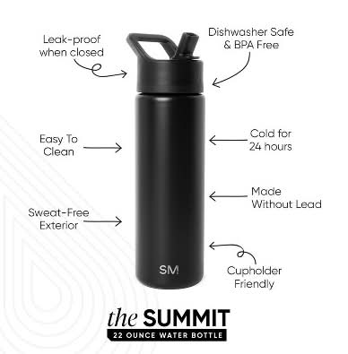 Simple Modern Summit Water Bottle With Straw Lid 22 oz, Black