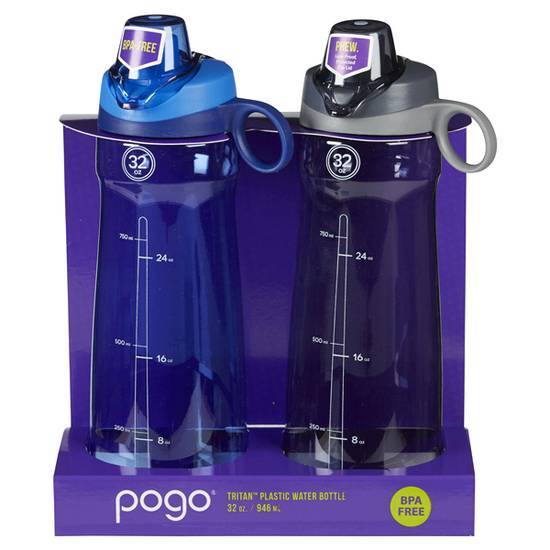 Pogo Chug Tritan Plastic Water Bottle, Grey-Blue (2 ct)