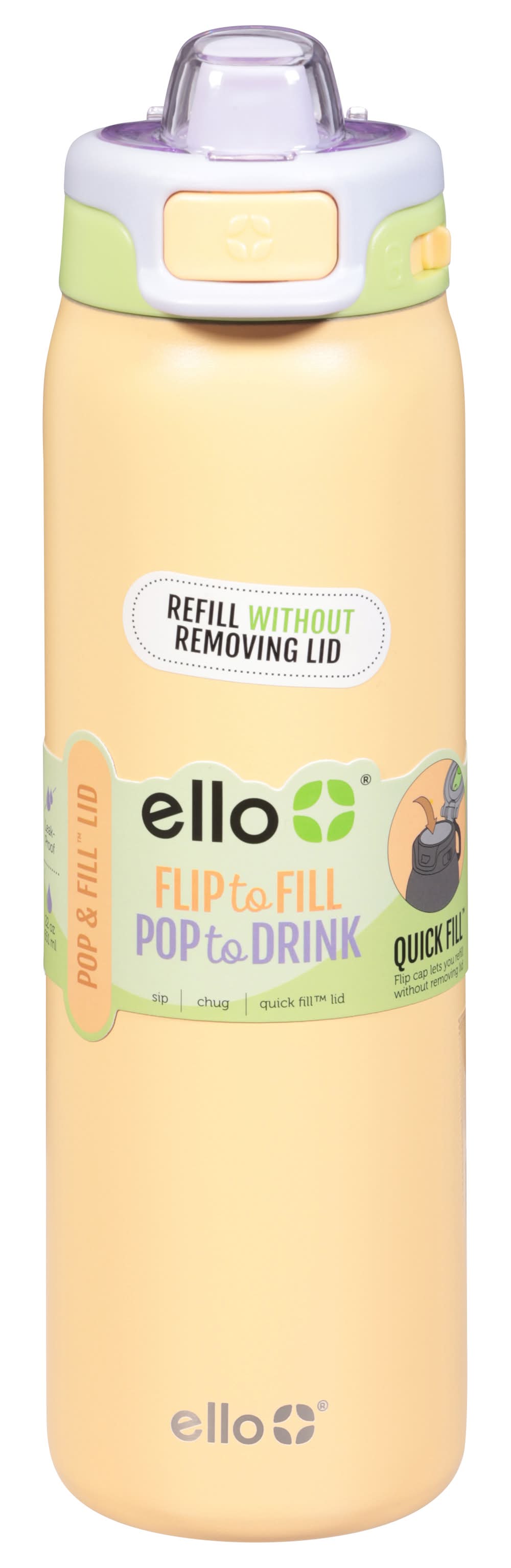 Ello Pop and Fill Stainless Steel Water Bottle 22 oz, Sorbet Pink
