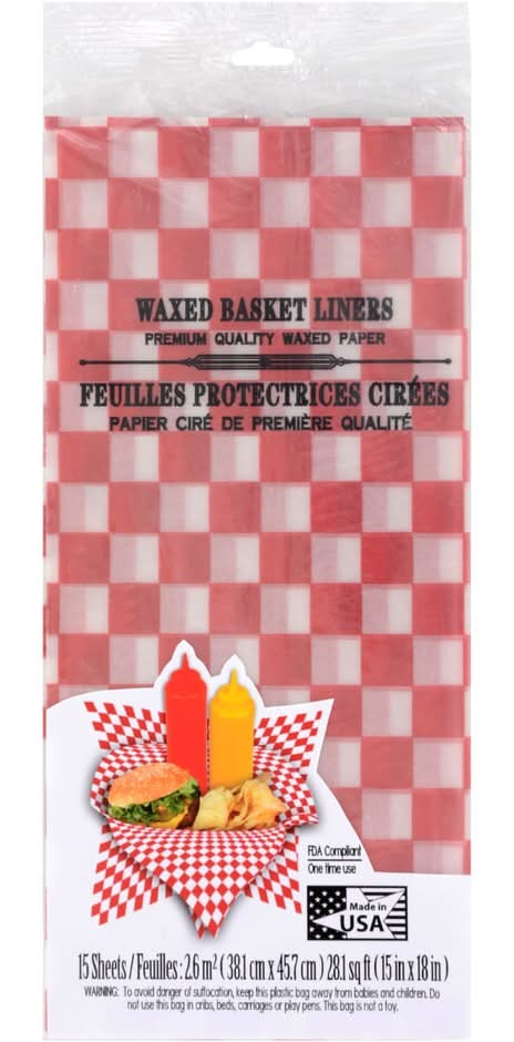 Waxed Basket Liners, 15x18 in, Red-White (15 ct)