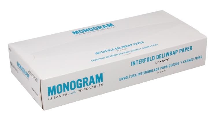 Monogram Interfold Deliwrap Paper, 12 X 10.76 inches, White