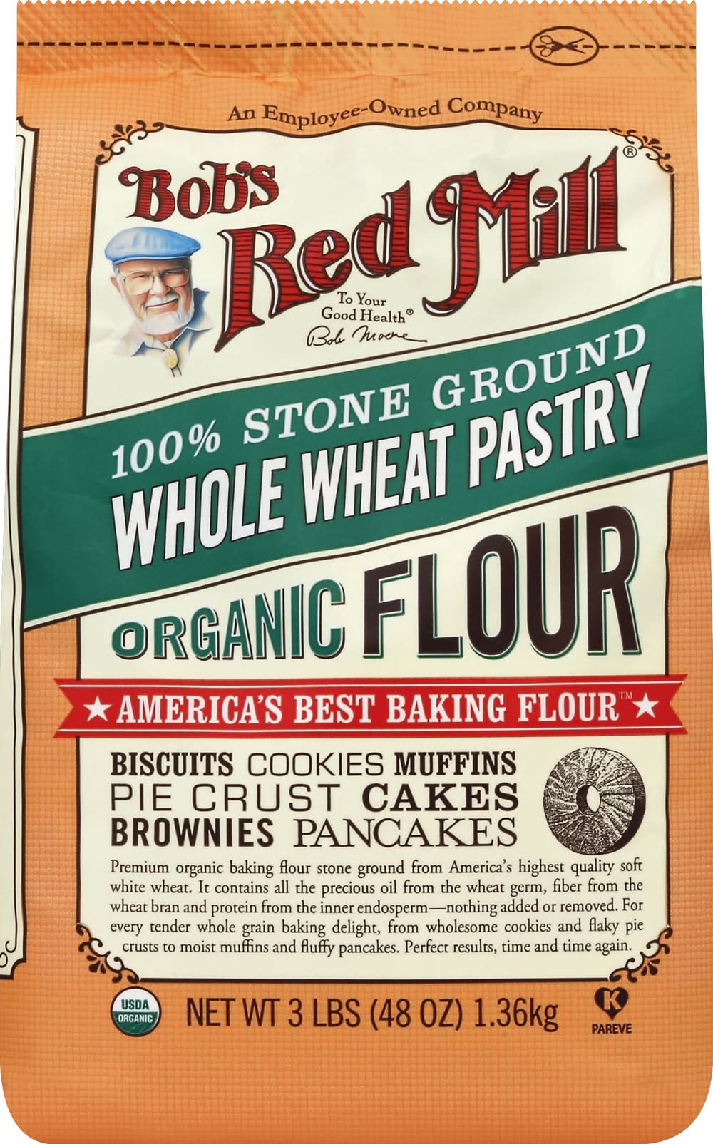 Bob's Red Mill 100% Stone Ground Organic Whole Wheat Flour (3 lbs)