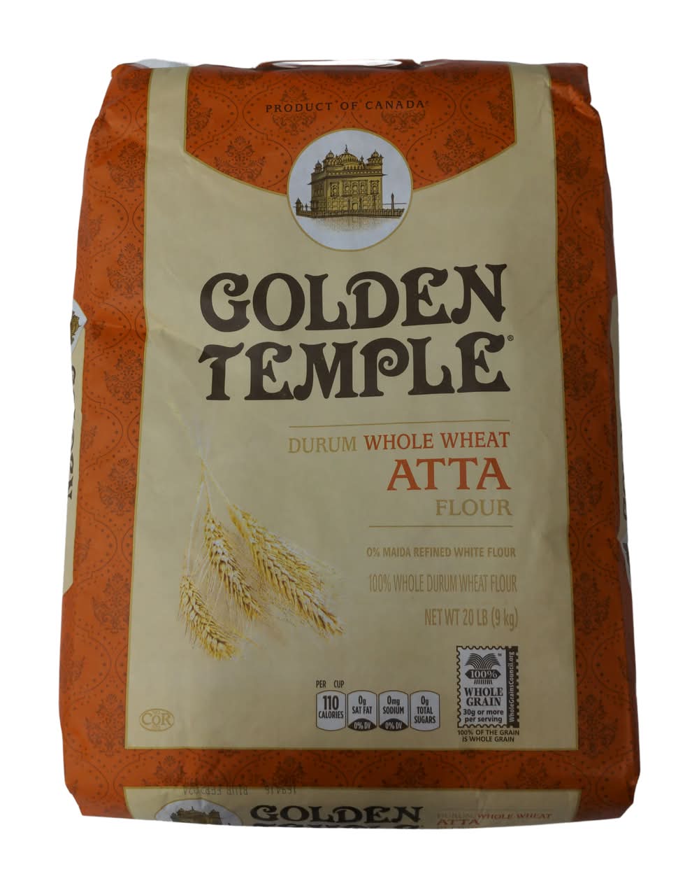 Golden Temple Durum Whole Wheat Atta Flour Bag (20 lbs)